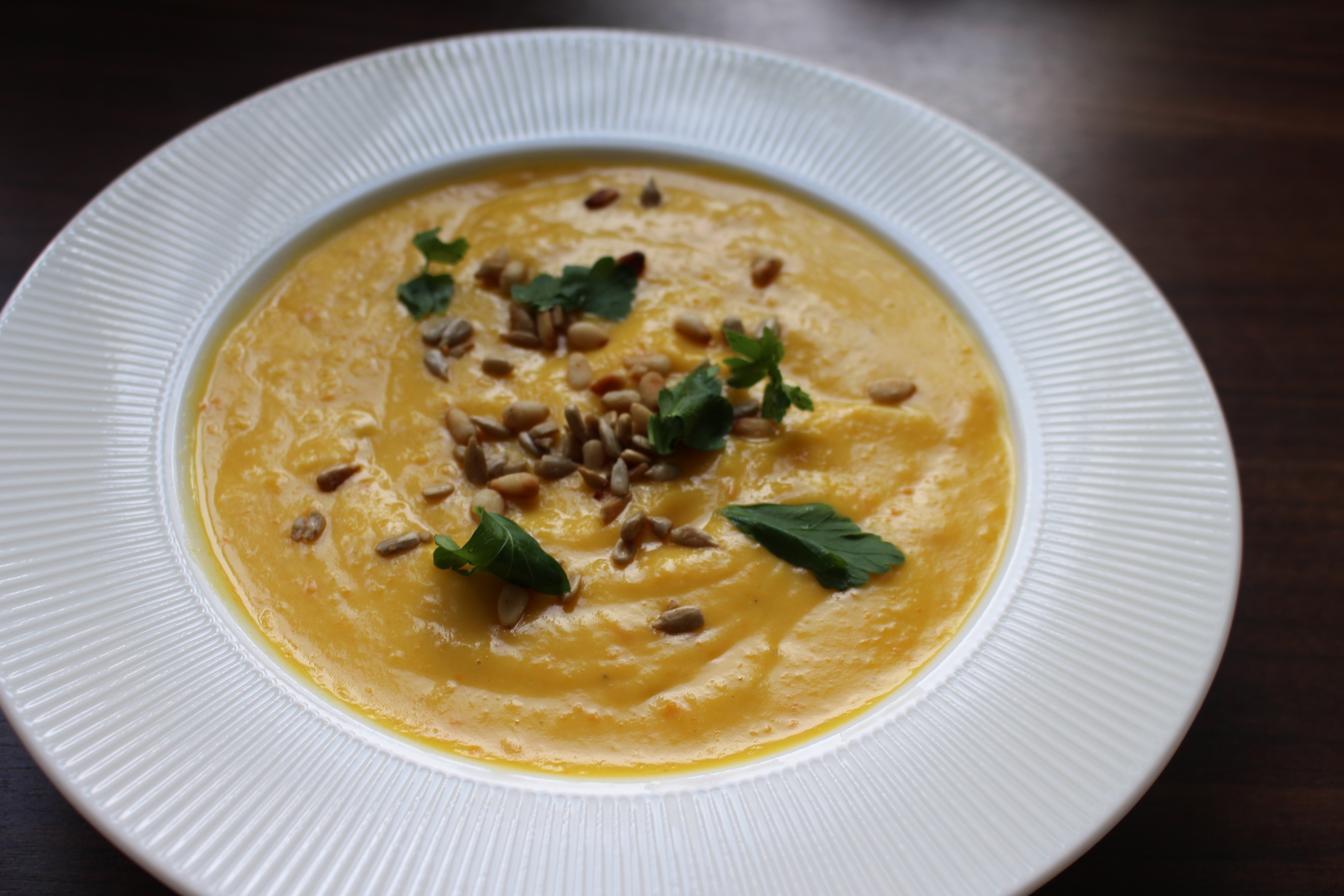 Der Herbst ist da und nichts passt so gut zum Herbst und gibt mir ein wohlig warmes Gefühl, wie eine warme Kürbissuppe. Allein schon die Farbe des Kürbisses strahlt so wunderbar herbstlich.