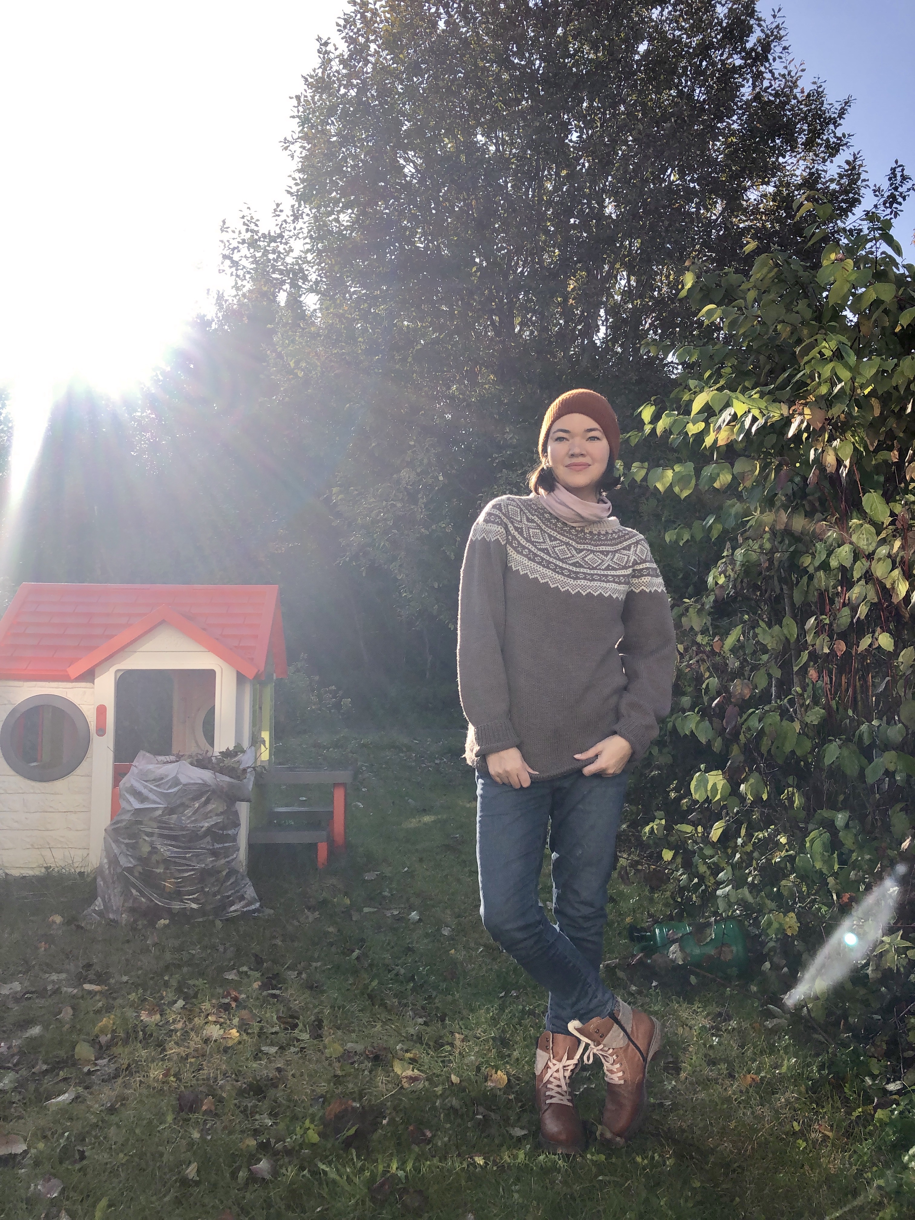 Deshalb entschied ich mich für ein hangestricktes Second Hand Modell. Nämlich dieses hier im typisch norwegischen Mariusmuster. Das originale Mariusmuster ist eigentlich blau-rot-weiß, also den Nationalfarben Norwegens und stammt aus dem Jahr 1953.