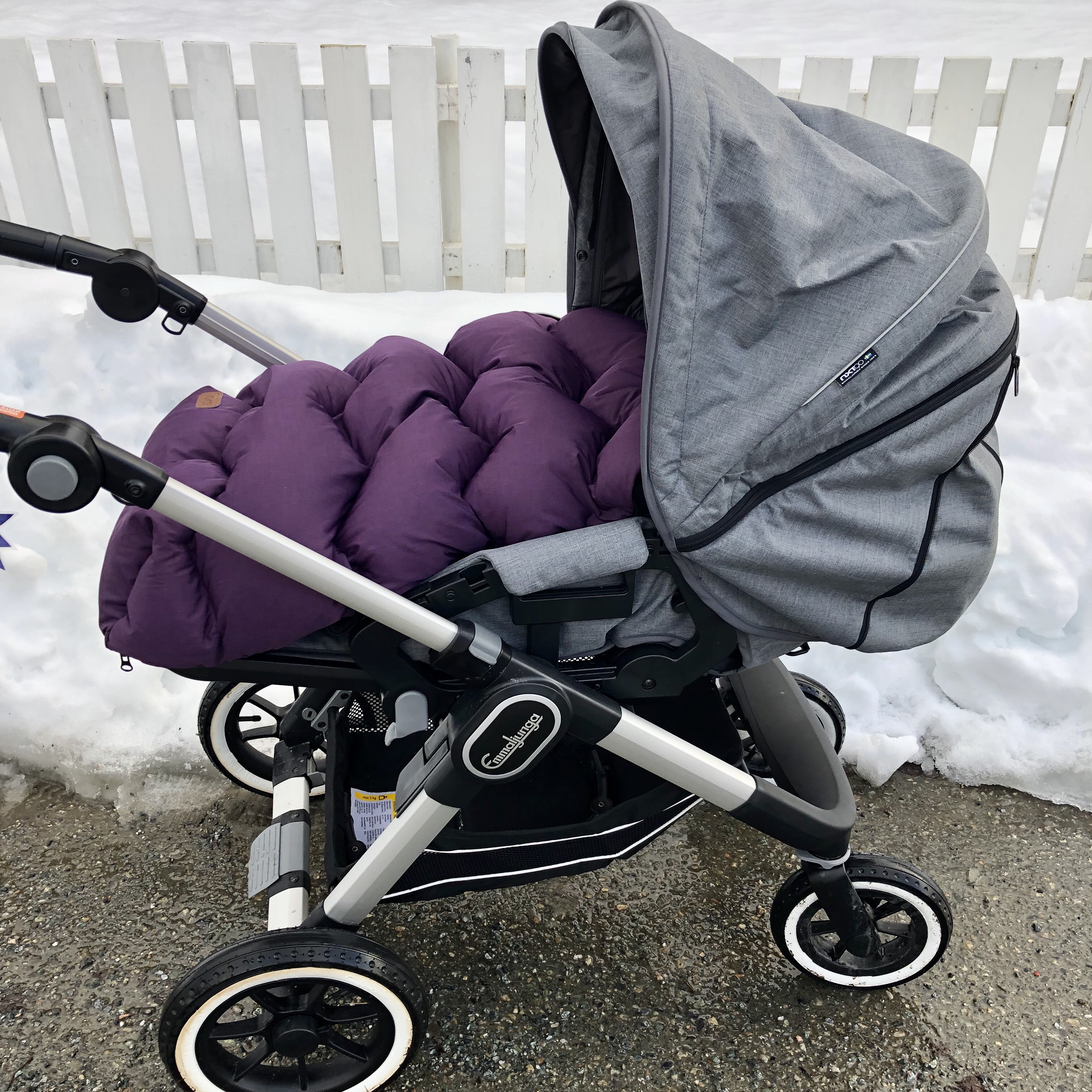 Der Emmaljunga NXT90 ist ein solider Sportwagen, der sich stabil und wertig anfühlt. Ich komme mit dem Emmaljunga im norwegischen Winter mit viel Eis und Schnee am besten voran. Deshalb ist er meine erste Wahl für den Winter. Wer also in einem schneereichen Gebiet wohnt, wird die Anschaffung des Emmaljunga sicher nicht bereuen, weil er mit seinen grossen Rädern und seinem hoheren Gewicht solide durch den Schnee rollt.