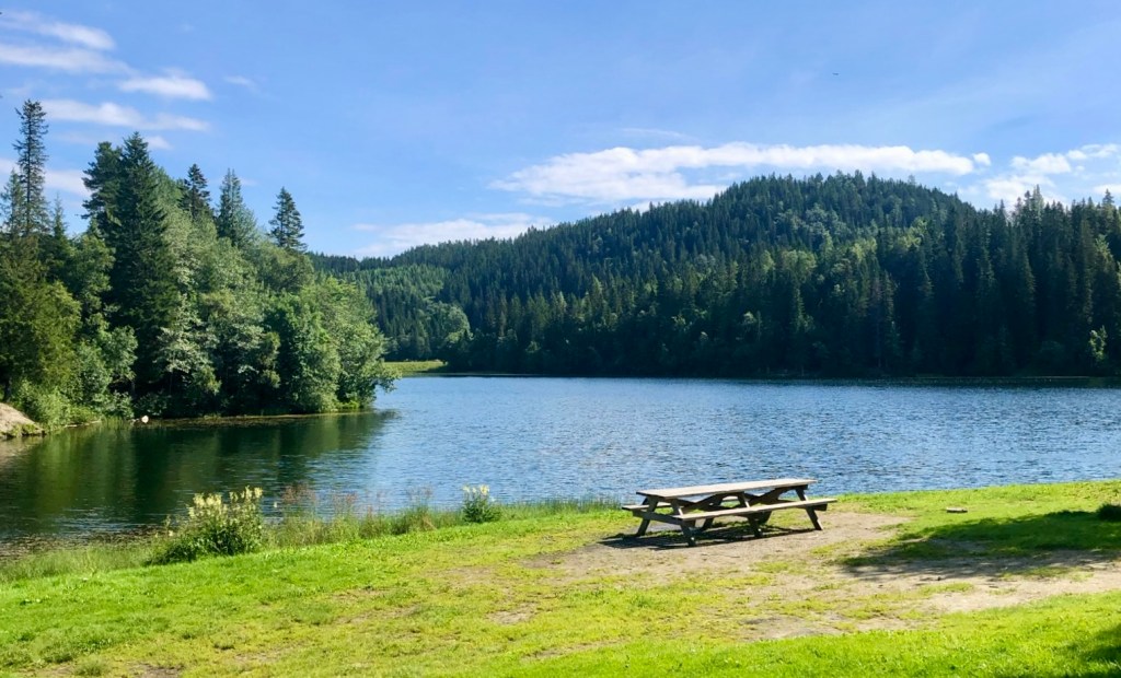 Auch der See Haukvatnet bietet einen tollen Ort für einen Ausflug mit Familie oder Freunden. Ob im Sommer zum Baden oder im Herbst zum Wandern um den See. Vom Parzplatz aus sind es ca. 10 min Fußweg bis zum See. Achtung: der Weg zum See ist mit großen Bäumen gesäumt und somit wurden wir auch schon überrascht als wir Mitte Mai im Sonnenschein zum See wollten und einen total vereisten Pfad vorfanden. Am schönsten finde ich den sie wahrscheinlich im Herbst, wenn die Bäume gelbe Blätter tragen.