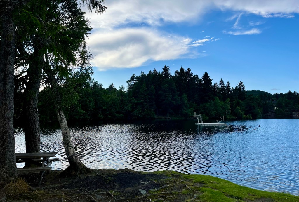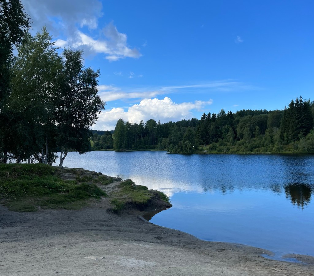 Theisendammen ist ein beliebter künstlich angelegter See in Trondheim. Der Damm befindet sich in Bymarka und liegt ca. 153 m über dem Meeresspiegel. Auch wir gehen sehr gerne dort mit unseren Kindern spazieren. Der 1,8 km lange Wanderweg um den See ist auch schon für unsere fünfjährige Tochter gut zu bewältigen gewesen, kleinere Kinder kann man auch sehr gut im Kinderwagen um den See schieben.