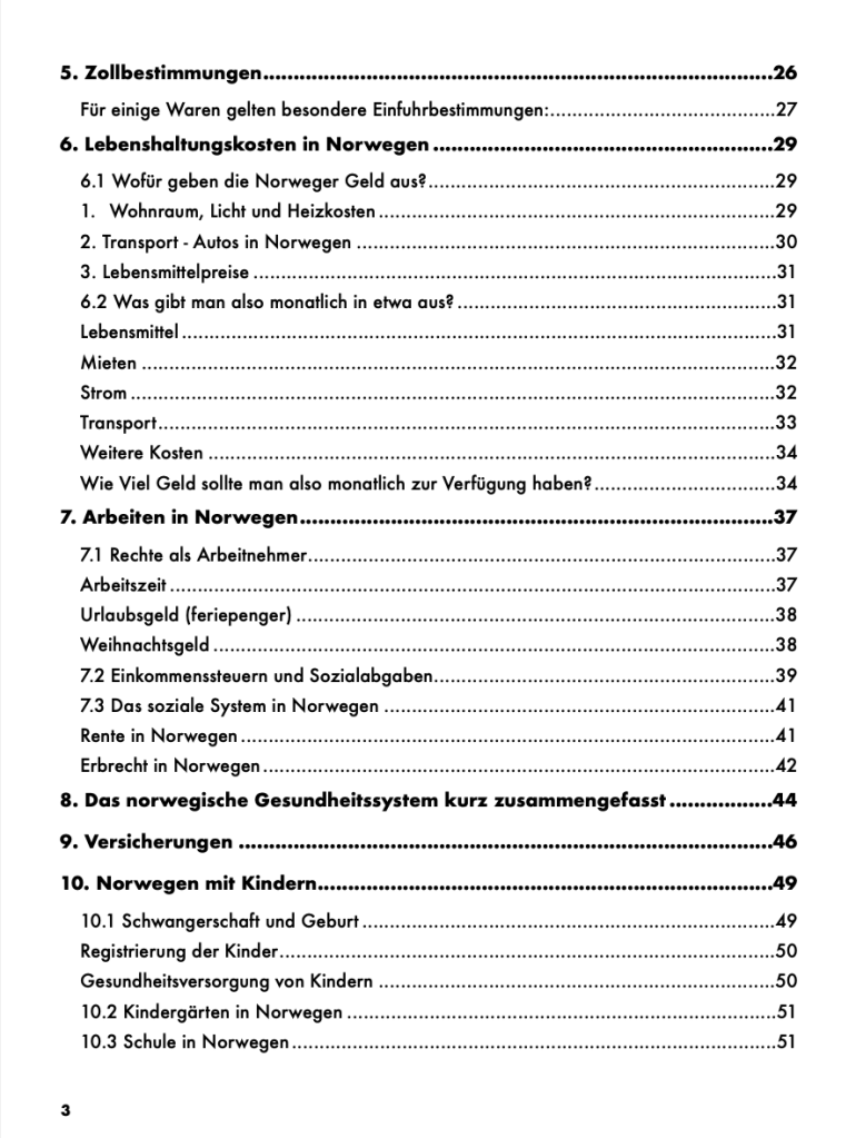 Das Buch basiert auf meiner Recherche und meinen Erfahrungen im Hinblick auf das Auswandern und Leben in Norwegen. Durch meine Zusammenarbeit mit Klienten, die ich beraten durfte, sind einige Schwerpunkte deutlich geworden, zu denen immer wieder Fragen auftreten. Im Buch habe ich versucht auf 55 Seiten die wichtigsten Themenbereiche abzudecken und zentrale Fragen zu klären. Ihr bekommt handfeste verlässliche Infos darüber, wann und wo ihr euch wie anmelden müsst, wie ein Hauskauf abläuft und welche Versicherungen man braucht und dazu alle wichtigen Links für eure Auswanderung. Die Informationen im Buch basieren auf meinen eigenen Erfahrungen und den Ergebnissen meiner Recherchen bezüglich der Auswanderung und des Lebens in Norwegen. Hier könnt ihr einen kleinen Blick in das Buch werfen: